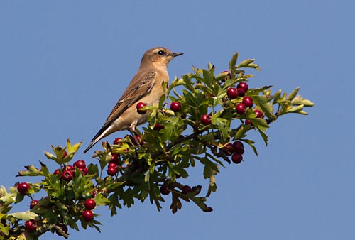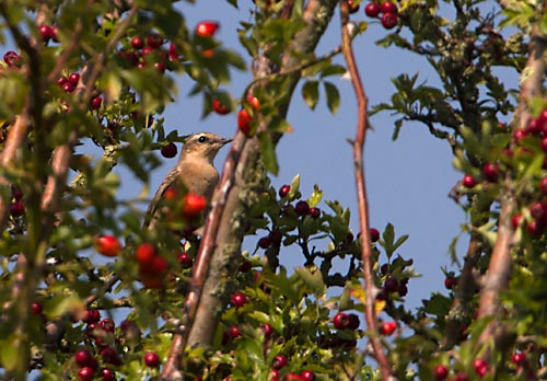Mooie Tapuit in een meidoornstruik in de Amerongse Bovenpolder.