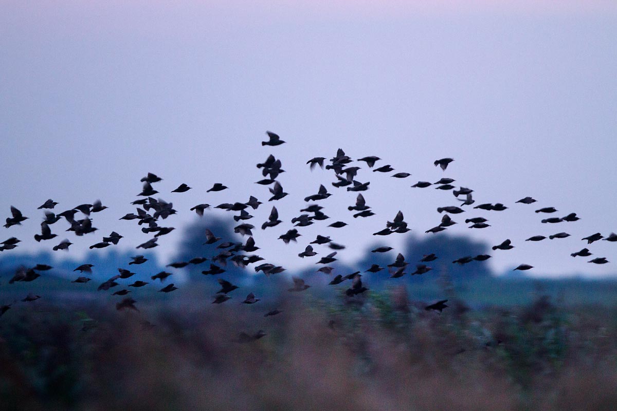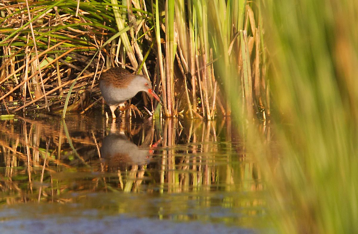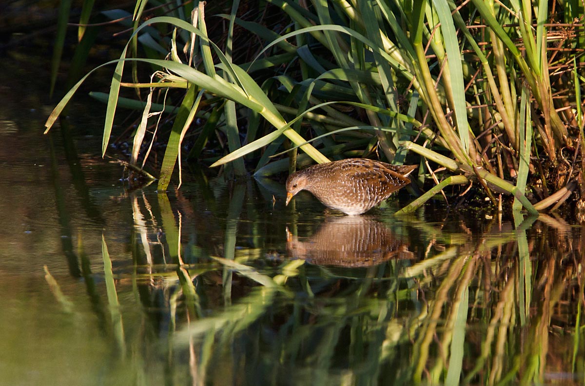 Porseleinhoenen en Waterrallen scharrelen in het avondlicht in de rietranden. Later als het donker begint te worden vliegen groepjes Spreeuwen van alle kanten naar hun slaapplaats in de Groene Jonker. Vogelparadijs in het Groene Hart.