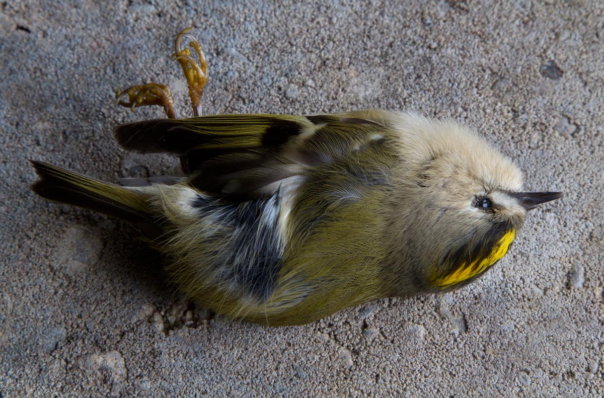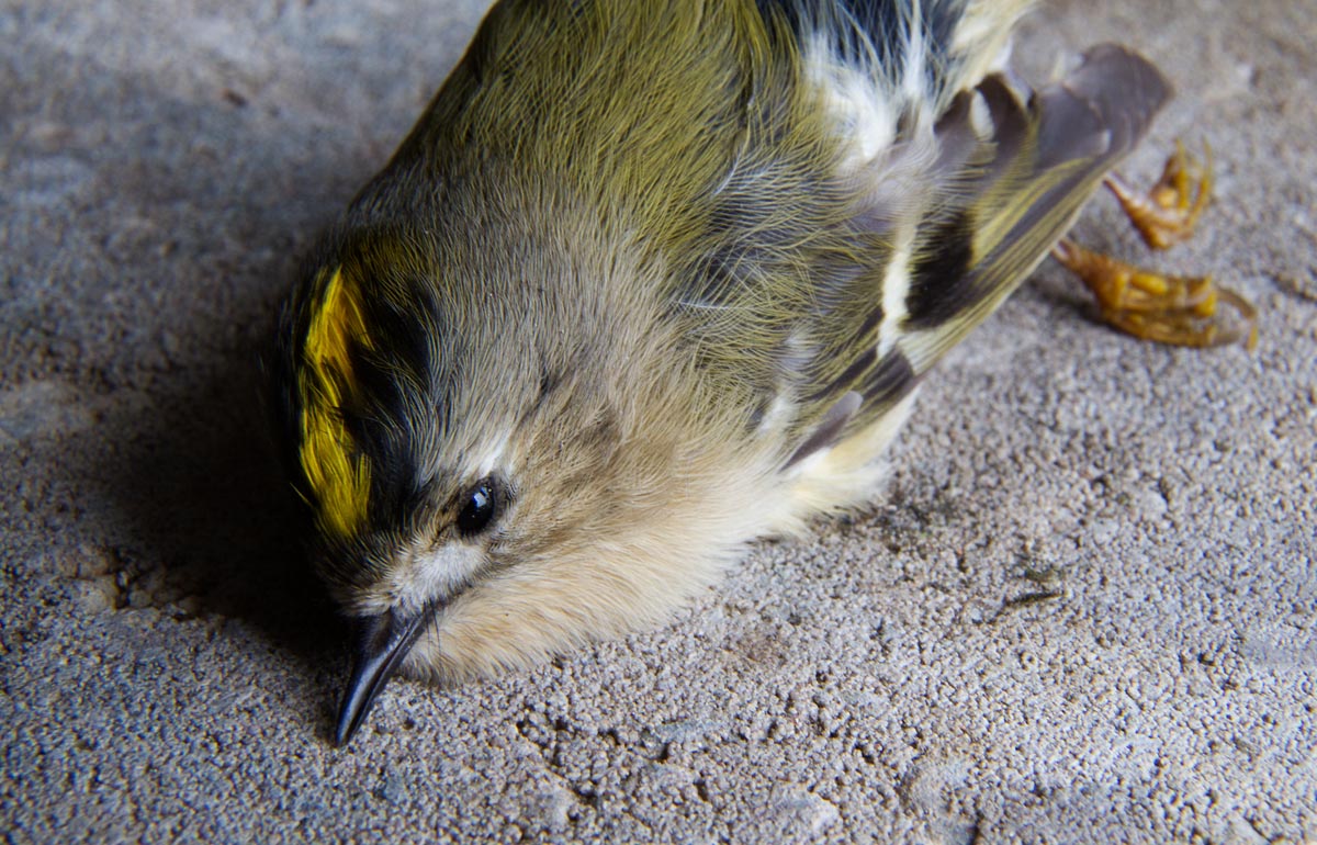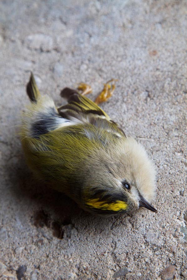 Gistermiddag hoorde ik een klap tegen mijn raam op de tweede verdieping van ons huis midden in Utrecht. Beneden op de stoep lag deze Goudhaan….