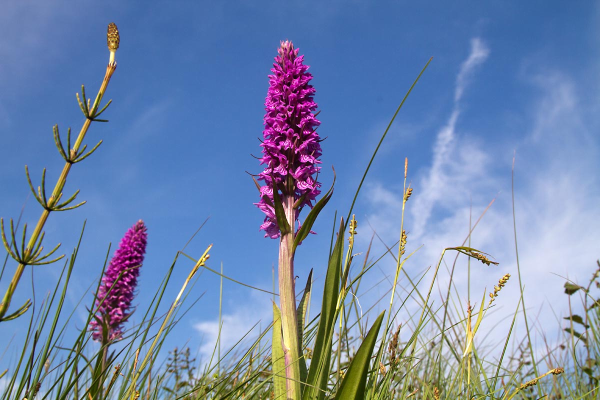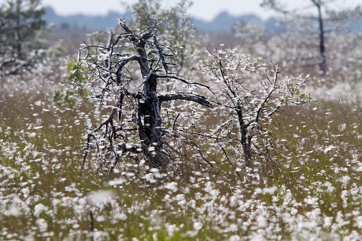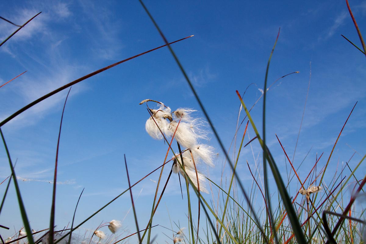 Het was wit op het Fochteloërveen. Geen sneeuw natuurlijk, maar veroorzaakt door de pluizen van uitgebloeid Wollegras. Wollegras is een typische plant die je in het hoogveen vindt. Ook mooie Rietorchissen.