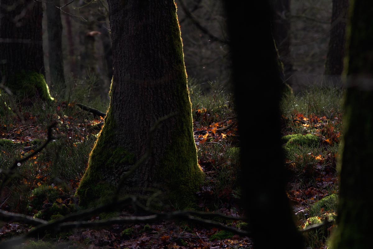 Groen mos op bomen in het Deelerwoud. Het Deelerwoud is een bos- en heidegebied op de Veluwe tussen Arnhem en Apeldoorn. Het natuurgebied wordt beheerd door Natuurmonumenten.