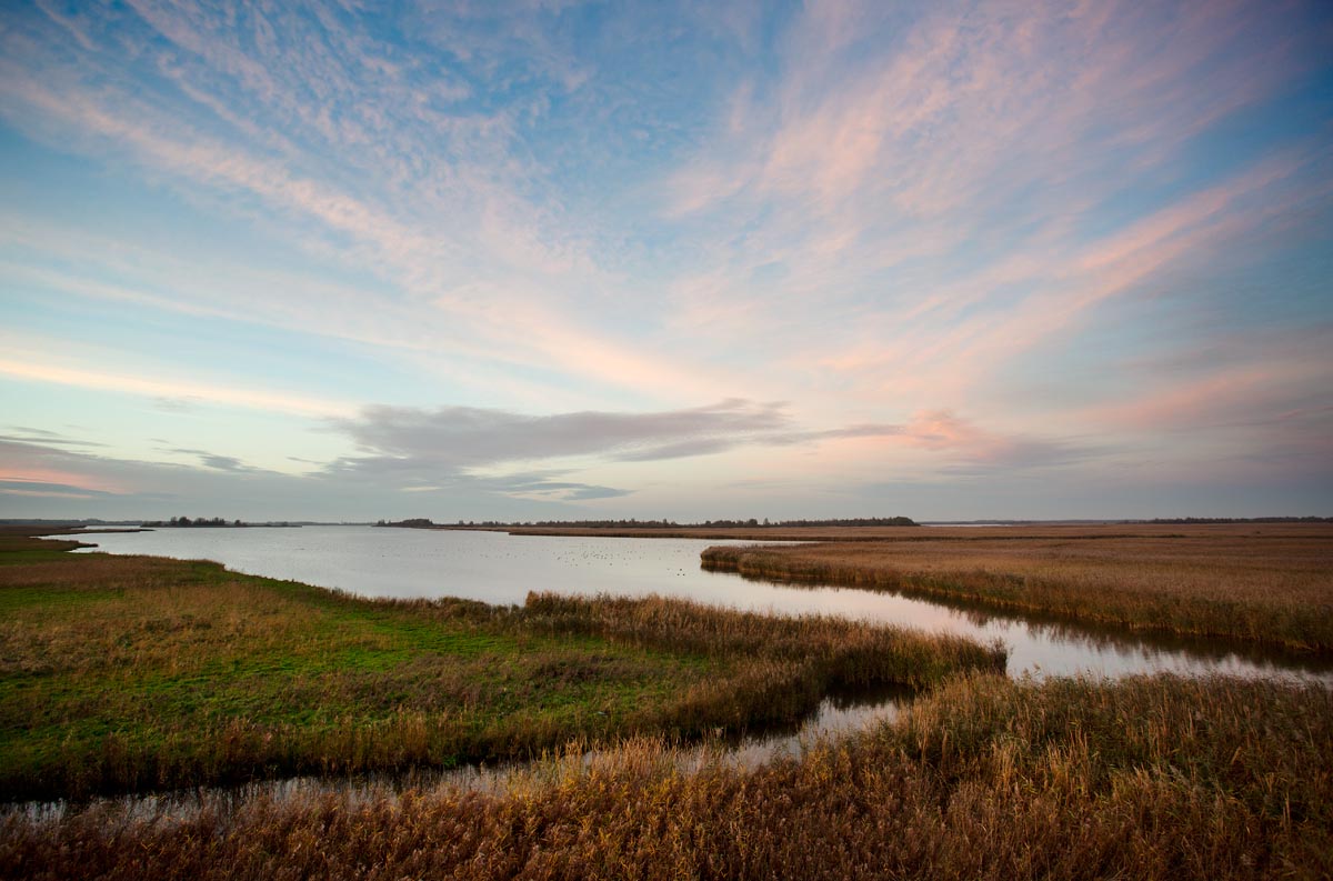 Het Nationaal Park Lauwersmeer is altijd fraai, maar aan het einde van de middag bij een ondergaande zon wordt het wel heel prachtig.