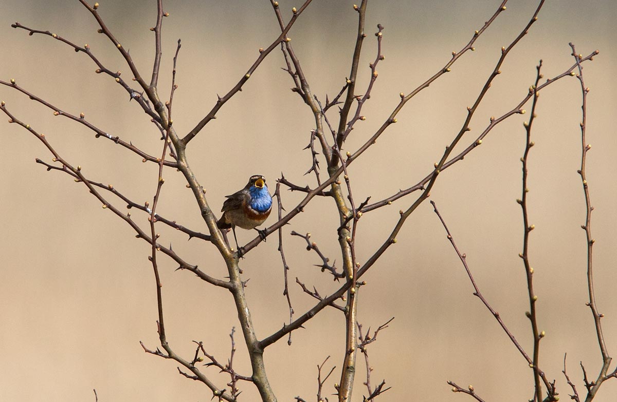 Het voorjaar komt op gang in het Lauwersmeer. De Bruine Kiekendieven zijn terug en ook de Blauwborsten. We hoorden onze eerste Rietzanger. Maar er zijn ook nog grote groepen Brandganzen die binnenkort naar het noorden zullen trekken. Nog even en dan is de winter echt voorbij.