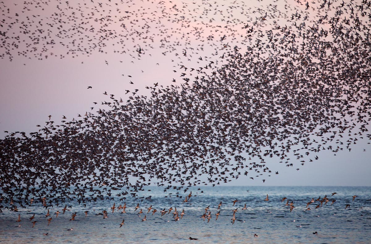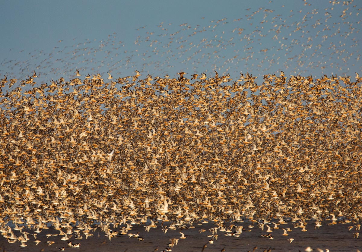 Voor mijn project “Birds around the North Sea” was ik afgelopen zomer opnieuw bij the Wash. The Wash is een wadachtig getijdengebied aan de Engelse Noordzeekust. Bij laag water zoeken duizenden steltlopers op de drooggevallen moddervlaktes naar voedsel. De vogels worden vervolgens bij hoog water naar de kust gedreven en zorgen voor spectaculaire beelden als ze in grote groepen opvliegen.