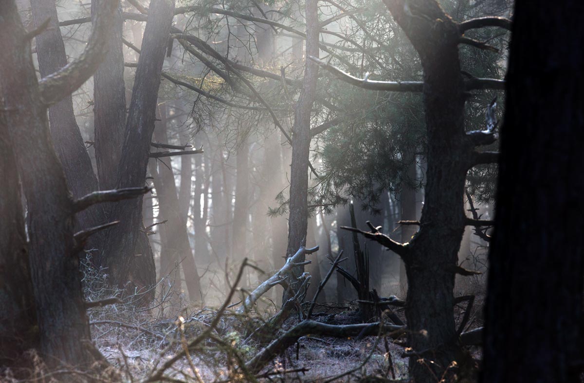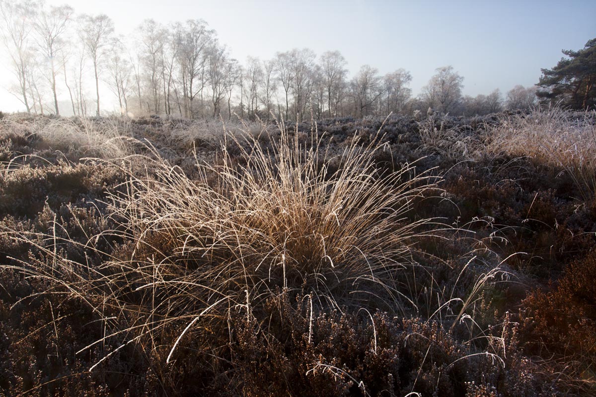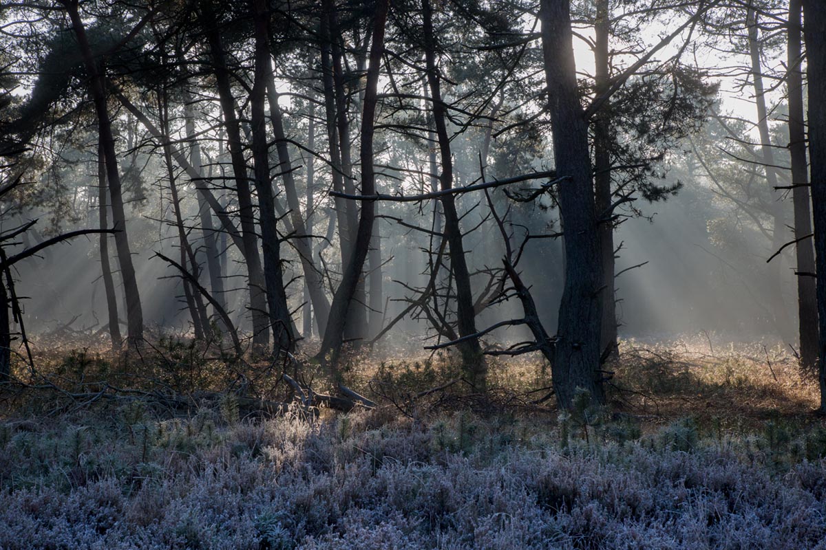 Rijp en zon, een mooie combinatie, in Nationaal Park de Hoge Veluwe.
