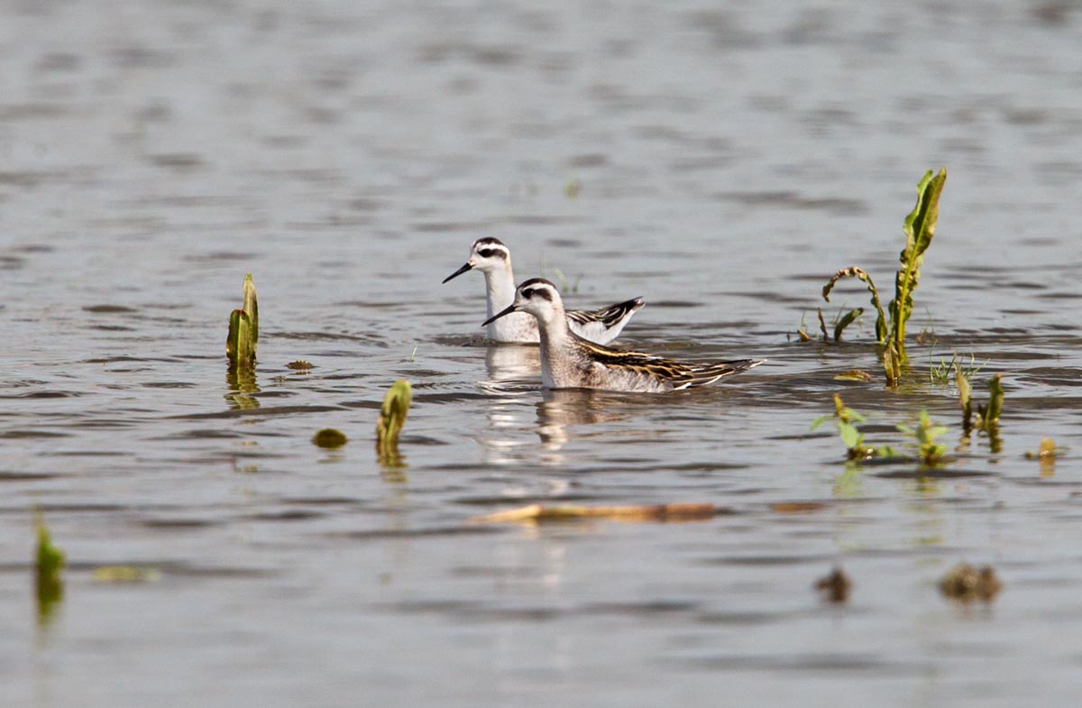 De najaarstrek is gaande. Eén van de soorten die dan met een beetje geluk te zien is in Nederland, is de Grauwe Franjepoot. Deze twee exemplaren waren druk aan het foerageren in de Ezumakeeg in Nationaal Park Lauwersmeer. Grauwe Franjepoten broeden op de arctische toendra en trekken in de nazomer naar het zuiden. Het zijn prachtige, sierlijke, vogels, ongeveer zo groot als een Bonte Strandloper.