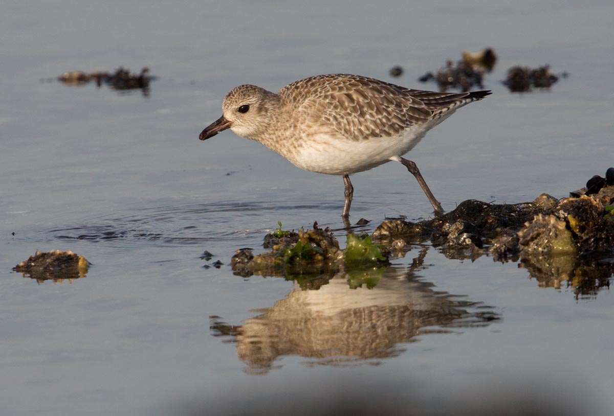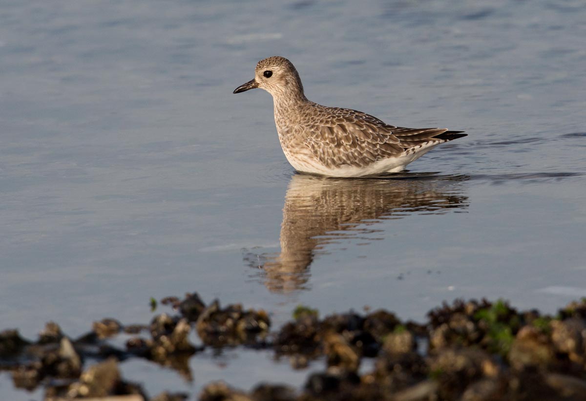 In de winter zijn ze altijd te vinden in de Delta en dus ook aan de Noordzeekust bij de Brouwersdam: Zilverplevieren. Deze wintergasten broeden op de toendra in het hoge noorden. Na de broedtijd trekken ze naar het zuiden o.a. langs de Nederlandse kust en als het niet al te koud is bij ons, dan blijven ze de hele winter. In de zomer is hun borst zwart, in de winter wit, zoals op de foto’s.