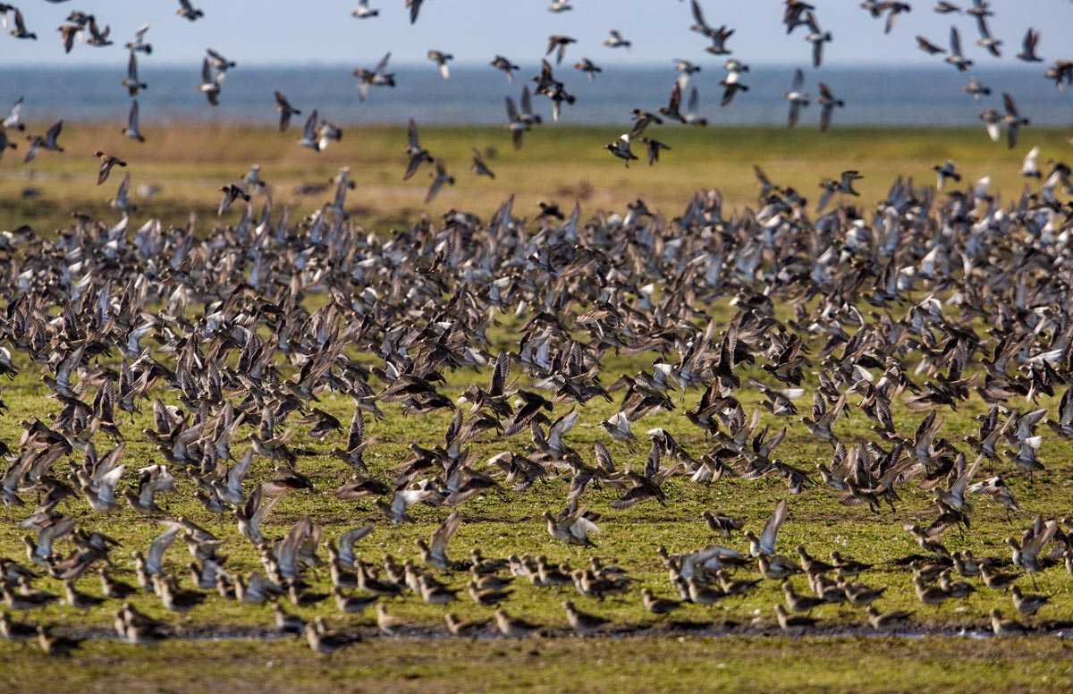 Lente in de Warkumerwaard: wisseling van de wacht. De broedvogels zoals grutto en veldleeuwerik arriveren. Een deel van de overwinteraars en doortrekkers wachten nog even voordat ze naar het hoge noorden vertrekken. Goudplevieren, kemphanen en brandganzen horen bij die categoriën. De duizenden goudplevieren vliegen af en toe op in indrukwekkende groepen. De Warkumerwaard of Workumerwaard bij Workum in Friesland is een prachtig weidevogelgebied dat deels in beheer is bij It Fryske Gea.
