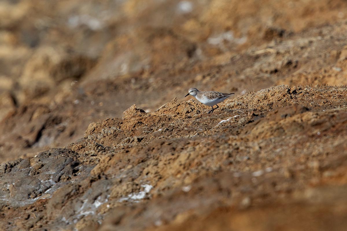 Kleine strandloper bij een zoutpan in natuurgebied Marismas del Odiel bij Huelva.