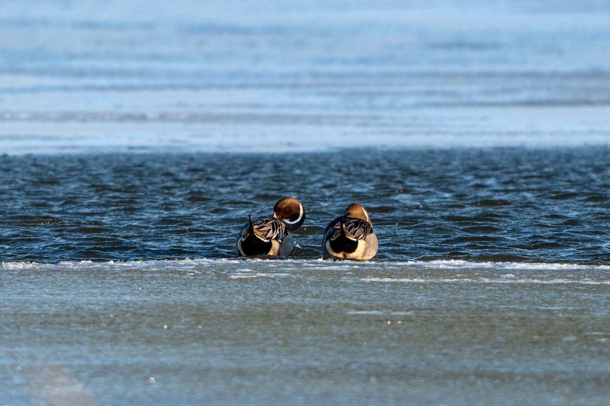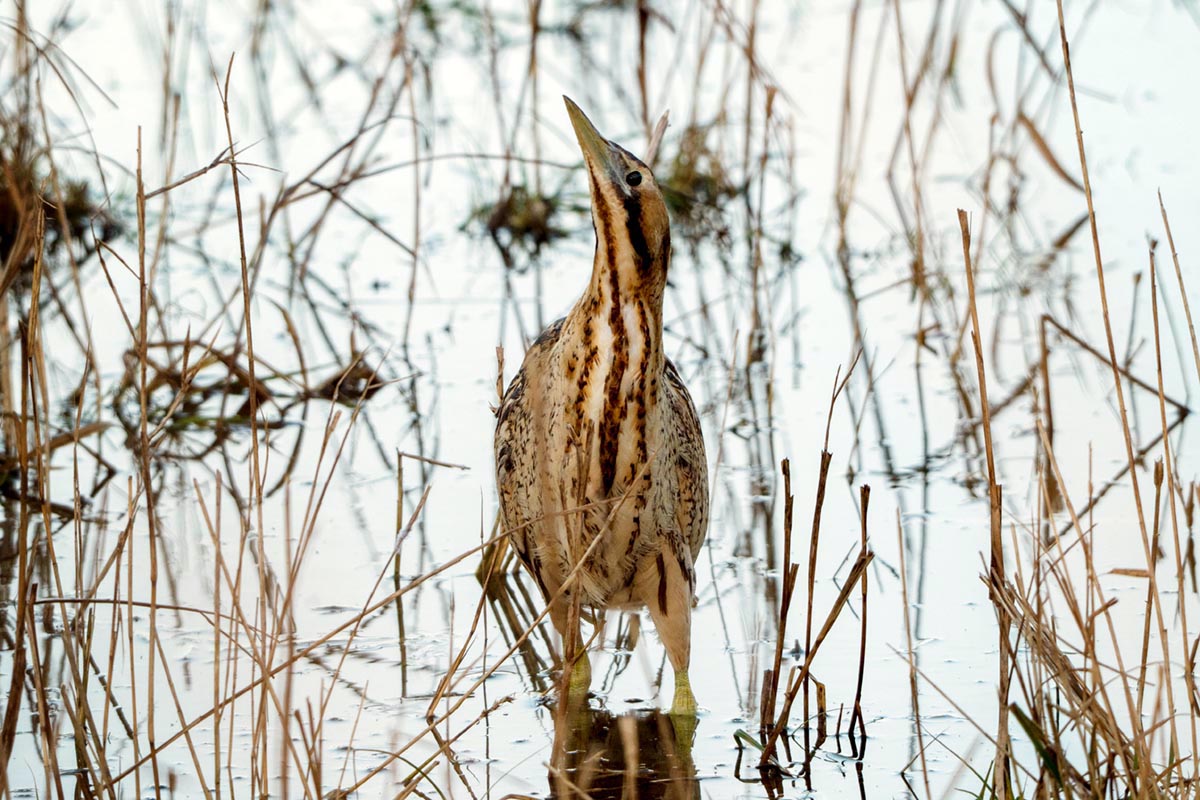 Het is koud in het Lauwersmeer. Het ijs heeft het leefgebied van watervogels flink ingeperkt. Roerdompen zijn zichtbaarder dan normaal omdat ze afhankelijk zijn van het resterende open water.