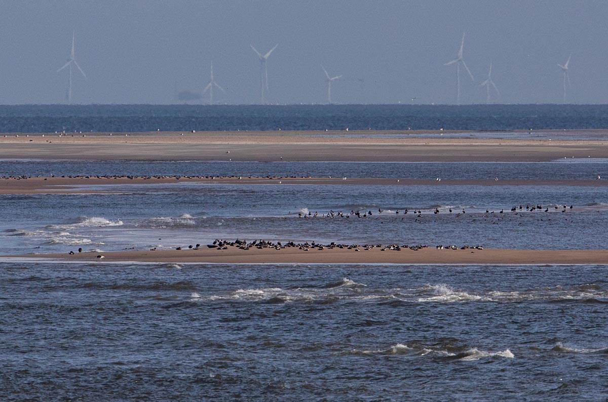 Vanaf de boot naar Vlieland is er mooi zicht op de zandplaat de Richel met rustende grijze en gewone zeehonden.